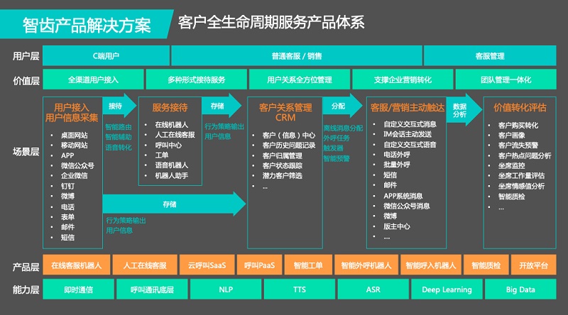 智齒科技創(chuàng)立于2014年,是一家客戶全生命周期服務(wù)解決方案的提供商。智齒科技在成立之初,就具備極具前瞻的判斷力,選擇了“智能+融合”的技術(shù)研發(fā)和產(chǎn)品布局,將呼叫中心、客服機(jī)器人“在線+呼入+呼出”、 人工在線客服、工單系統(tǒng)全面整合到產(chǎn)品體系中,用智能技術(shù)打通了企業(yè)獲客、營銷、售前、售中、售后服務(wù)體驗(yàn)的完整閉環(huán),每一款產(chǎn)品都能與另一款產(chǎn)品建立強(qiáng)聯(lián)系,觸達(dá)用戶體驗(yàn)的每一個(gè)場景,讓智能化體驗(yàn)無縫銜接。目前,智齒科技已具備完整、領(lǐng)先的“服務(wù)+營銷+協(xié)作+管理”產(chǎn)品線,在眾多智能客服廠商中脫穎而出。