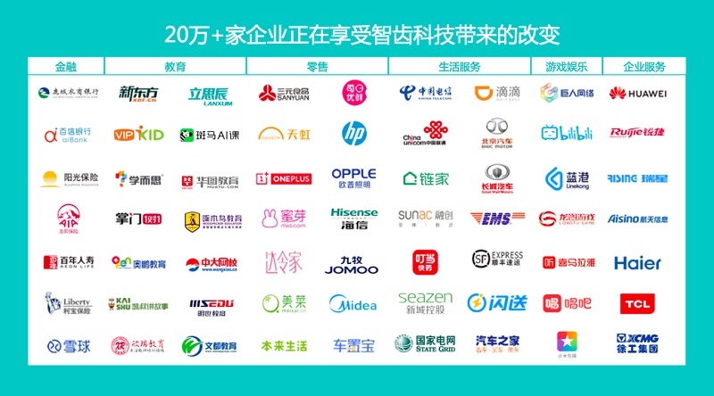 目前,智齒科技合作應(yīng)用企業(yè)超過20萬家,銷售額年同比增長200%,市場占有率及品牌效應(yīng)正日益提升。包括陽光保險(xiǎn)、友邦保險(xiǎn)、中國電信、長城汽車、滴滴出行、鏈家、每日優(yōu)鮮、九牧、新東方、學(xué)而思、惠普、華為、海信、美的、EMS、融創(chuàng)、廣州市政府等在內(nèi)的知名政企已經(jīng)成為智齒科技的合作企業(yè)客戶,覆蓋零售、教育、企業(yè)服務(wù)、生活消費(fèi)、游戲、運(yùn)營商、政府及公共事業(yè)機(jī)構(gòu)等多元領(lǐng)域。