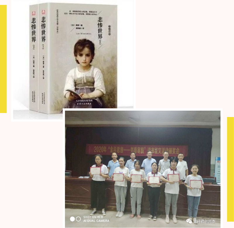 2020年1月,為了豐富學生的寒假生活,培養(yǎng)廣大學生良好的閱讀習慣,激發(fā)學生的閱讀積極性,引導學生愛讀書、多讀書、讀好書,鼓勵師生與經(jīng)典為友,同好書相伴,在潛移默化的滋養(yǎng)中開拓視野、陶冶情操,金科君創(chuàng)社會責任組決定與江西九江慈濟中學、西藏拉薩北京中學分別開展“金科君創(chuàng)-書香寒假”讀書征文活動。