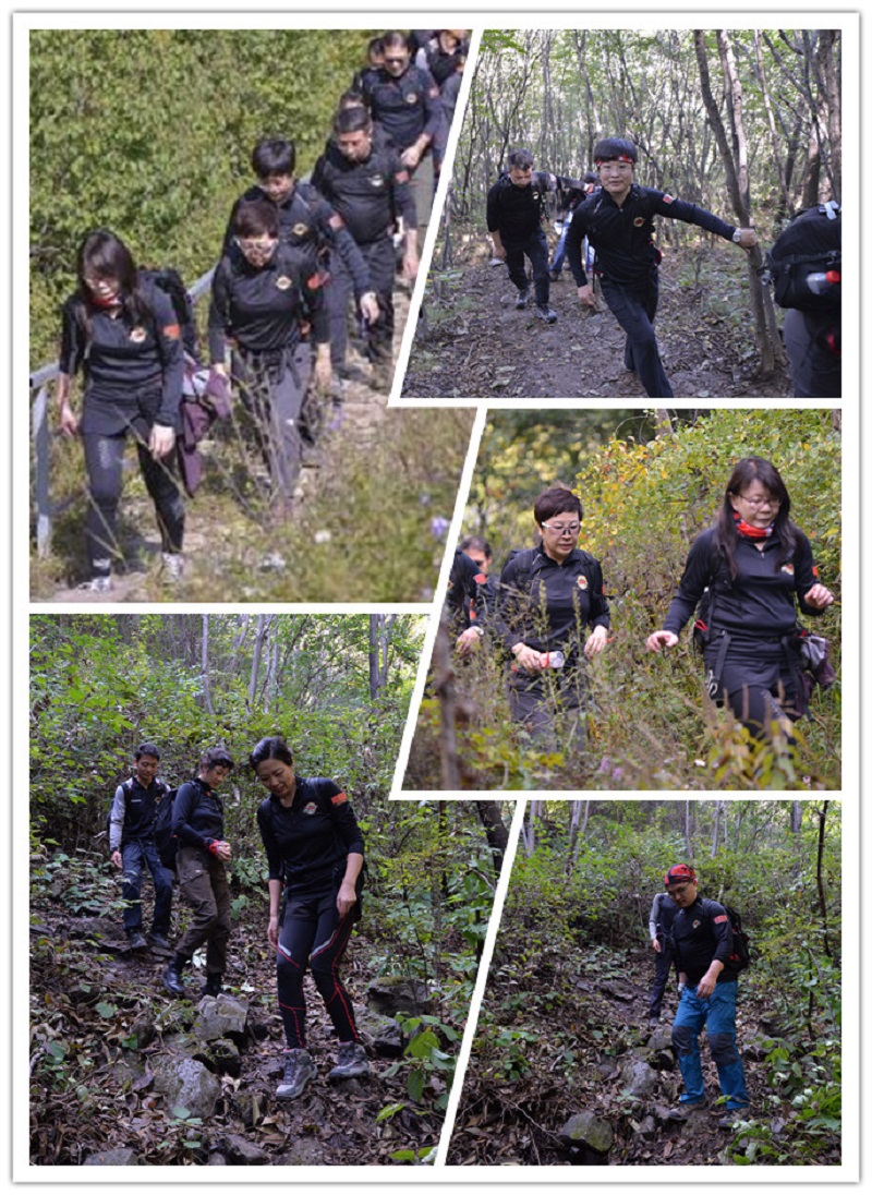 山腳下,各位隊(duì)員都很認(rèn)真的進(jìn)行了熱身訓(xùn)練。隨后,我們按照強(qiáng)帶弱,老帶新,三人一組,向著1000米的“高山”,走起?!拔以?jīng)跨過山和大海,也穿過人山人海?!鄙狭松剑旅婢驮撎蕉戳?,來吧,展示!