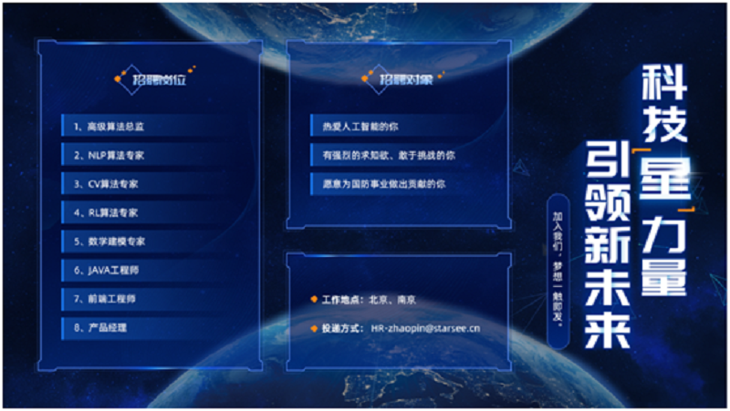 目前,攝星智能已經(jīng)啟動了“百萬年薪人才引進計劃”,大力招募NLP、語音識別、CV、策略、機器學習、數(shù)學建模等方向的精英人才,主要負責新型產(chǎn)品研發(fā)及領域內(nèi)艱深技術(shù)科研工作。