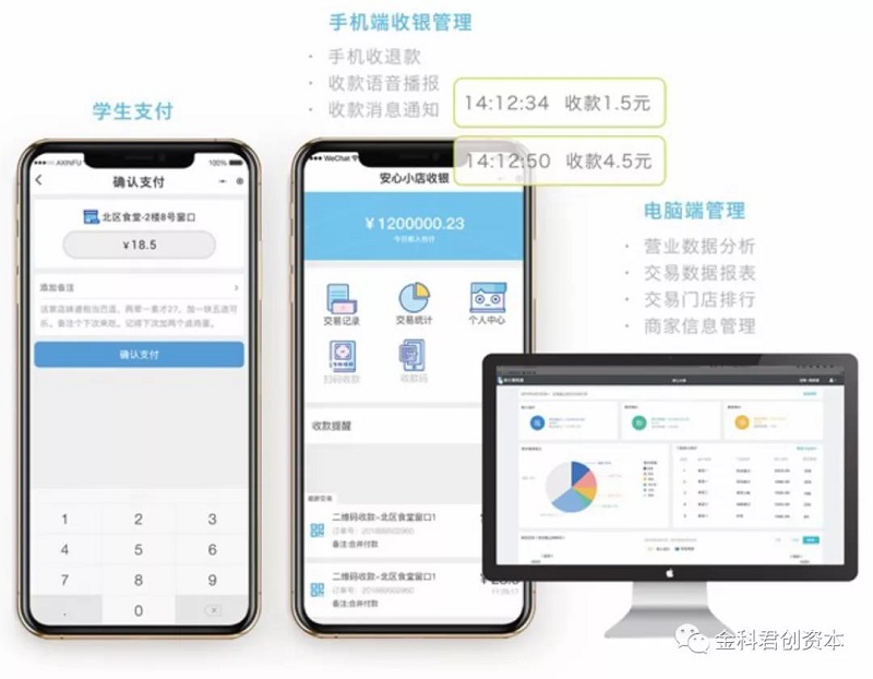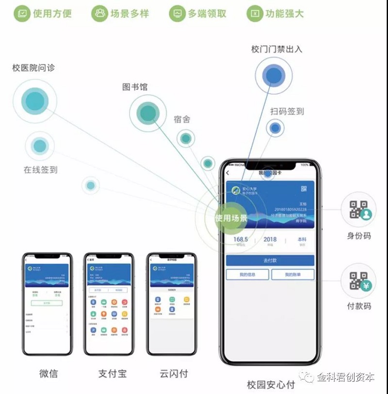 移動(dòng)支付是互聯(lián)網(wǎng)金融的第一入口——支付寶和微信支付觸及廣大C端,讓支付成為互聯(lián)網(wǎng)金融的基礎(chǔ)設(shè)施。擁有足夠的廣度之后則是業(yè)務(wù)深度,因此,“場(chǎng)景”成為今天互聯(lián)網(wǎng)的關(guān)鍵詞。由于校園場(chǎng)景自身的特殊性,智慧財(cái)務(wù)和智慧校園建設(shè)既是推進(jìn)高校信息化的必然要求,又使得這一過(guò)程具有高門(mén)檻、嚴(yán)把控的鮮明特點(diǎn)。我司所投企業(yè)成都智匯安新科技有限公司推出的——校園安心付,深刻洞悉校園信息化建設(shè)現(xiàn)狀,以中國(guó)銀聯(lián)為背書(shū)的校園安心付,積極與學(xué)校尋求合作,找到了最優(yōu)解決方案。