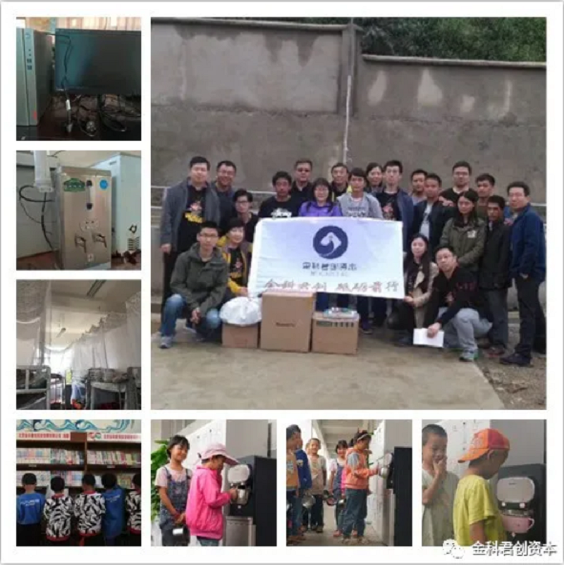 目前金科君創(chuàng)、公司全體員工及親朋好友已經(jīng)累計(jì)捐贈(zèng)了799套“李寧”牌運(yùn)動(dòng)裝備、327條被子、105頂蚊帳、2臺(tái)開水爐、2臺(tái)臺(tái)式計(jì)算機(jī)、5組碗柜、6臺(tái)飲水機(jī)和10組書架等相關(guān)生活學(xué)習(xí)物資。