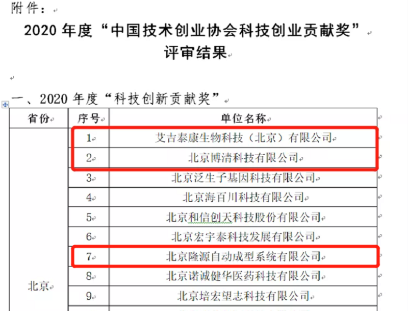2020年度“中國技術(shù)創(chuàng)業(yè)協(xié)會科技創(chuàng)業(yè)貢獻(xiàn)獎”已通過評審評委員會評審,我司投資的艾吉泰康、博清科技及三帝科技控股的隆源成型,憑借領(lǐng)先技術(shù)和優(yōu)秀產(chǎn)品獲評2020年度“科技創(chuàng)新貢獻(xiàn)獎”。