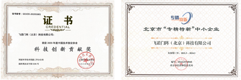 飛諾門(mén)陣是中關(guān)村高新技術(shù)企業(yè)、國(guó)家高新技術(shù)企業(yè),先后獲得5個(gè)ISO管理體系認(rèn)證、“安防工程企業(yè)設(shè)計(jì)施工維護(hù)能力(三級(jí))”資質(zhì),與公安部一所和三所合作編寫(xiě)2個(gè)公安物聯(lián)網(wǎng)的核心國(guó)家標(biāo)準(zhǔn),也累計(jì)提交了30余項(xiàng)發(fā)明專(zhuān)利,獲得40余項(xiàng)軟件著作權(quán),進(jìn)一步豐富了飛諾門(mén)陣的知識(shí)產(chǎn)權(quán)體系。2021年以來(lái),飛諾門(mén)陣獲評(píng)北京市專(zhuān)精特新中小企業(yè),入選中國(guó)信通院首批“云邊協(xié)同產(chǎn)業(yè)方陣”并聯(lián)合發(fā)布《云邊協(xié)同關(guān)鍵技術(shù)態(tài)勢(shì)研究報(bào)告(2021)》,并連續(xù)斬獲“十四五”科技創(chuàng)新先行示范單位、2021年度高成長(zhǎng)力企業(yè)獎(jiǎng)、2021 年度行業(yè)信息化最具影響力企業(yè)獎(jiǎng)等獎(jiǎng)項(xiàng),在“未來(lái)之光”未來(lái)網(wǎng)絡(luò)科技創(chuàng)新大賽、“創(chuàng)客北京”創(chuàng)新創(chuàng)業(yè)大賽、科技部顛覆性大賽等賽事中取得優(yōu)異名次。