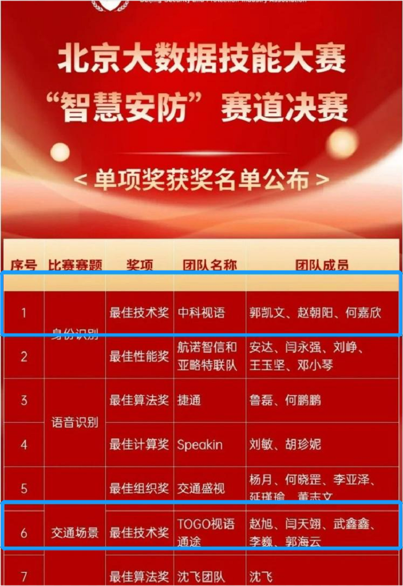 由北京市總工會(huì)、北京市經(jīng)信局指導(dǎo),北京市大數(shù)據(jù)中心、北京安全防范行業(yè)協(xié)會(huì)主辦的2022年北京大數(shù)據(jù)技能大賽“智慧安防”賽道決賽圓滿落幕。本次大賽旨在通過(guò)鼓勵(lì)具備人工智能、大數(shù)據(jù)分析與挖掘等高精尖技術(shù)的企業(yè)、研究機(jī)構(gòu)等積極參與大數(shù)據(jù)應(yīng)用與創(chuàng)新,加快大數(shù)據(jù)和人工智能產(chǎn)業(yè)發(fā)展,推動(dòng)科技與產(chǎn)業(yè)的深度融合。中科視語(yǔ)在眾多參賽團(tuán)隊(duì)中脫穎而出,通過(guò)了專家評(píng)審團(tuán)隊(duì)的綜合評(píng)判,斬獲身份識(shí)別、交通場(chǎng)景雙項(xiàng)“最佳技術(shù)”大獎(jiǎng)。