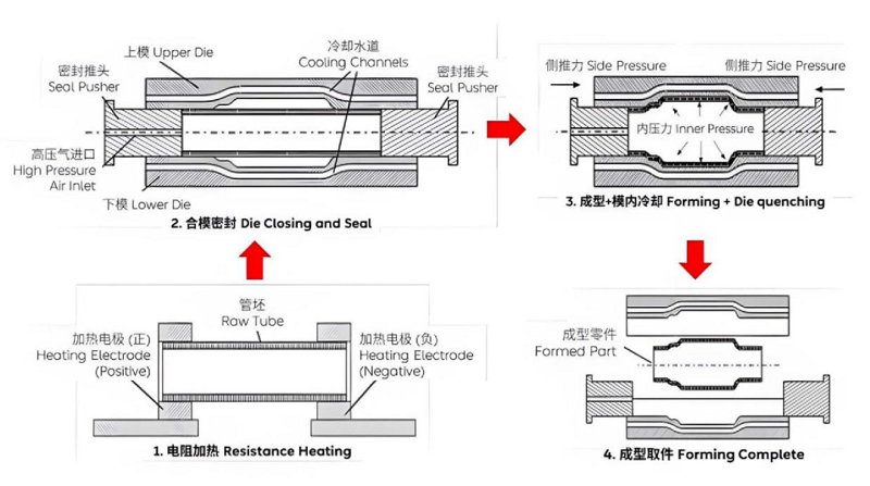 在國家科技重大專項(xiàng)(04專項(xiàng))的支持下,航宇智造自主研發(fā)的"熱氣脹成形技術(shù)"應(yīng)運(yùn)而生。它不僅解決了傳統(tǒng)薄板沖壓點(diǎn)焊管梁結(jié)構(gòu)下,半封閉類型導(dǎo)致力學(xué)性能無法充分發(fā)揮的痛點(diǎn),而且避免了國外競品技術(shù)路線出現(xiàn)“氫脆現(xiàn)象”的問題。