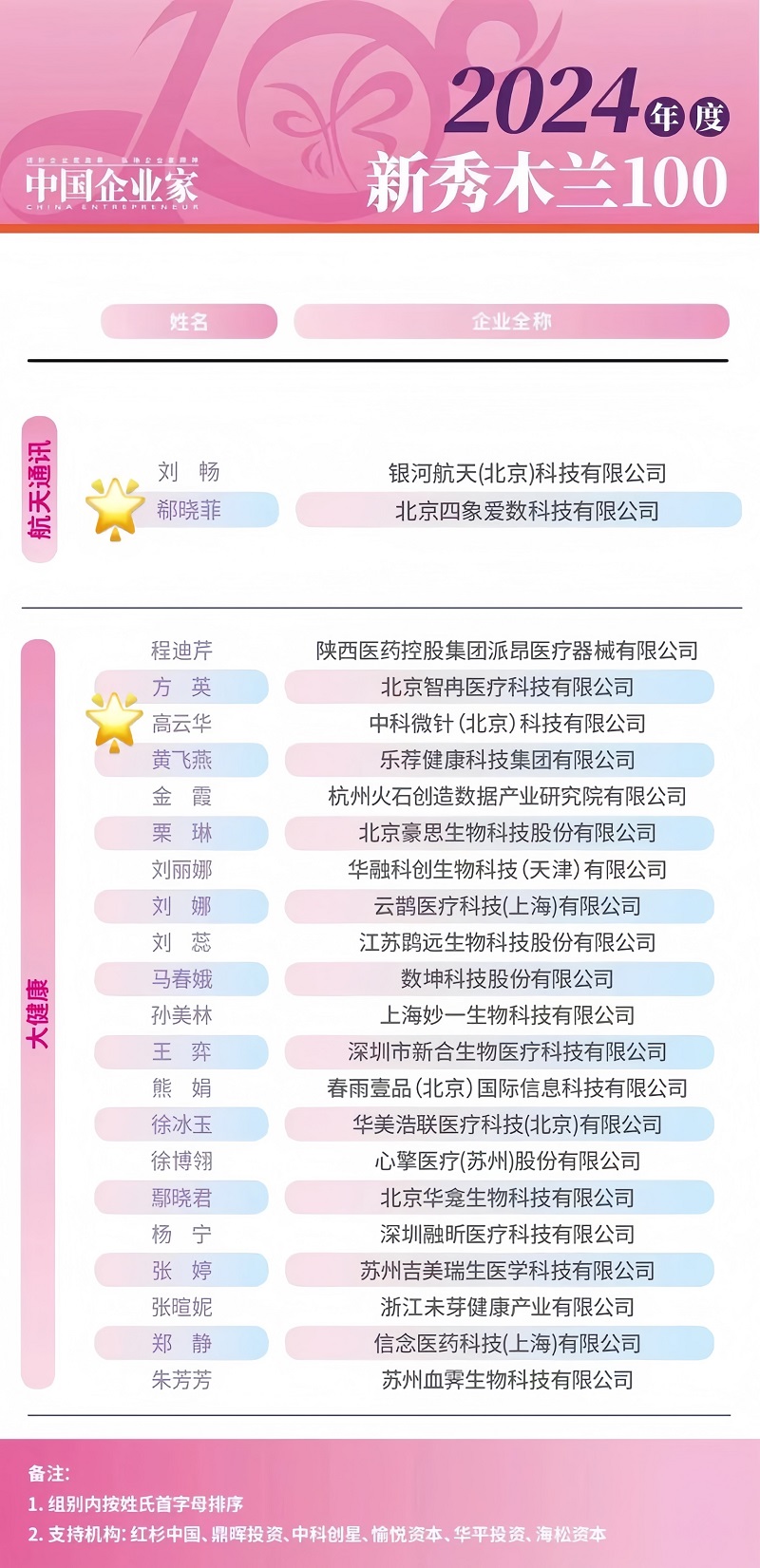 近日,《中國(guó)企業(yè)家》雜志社首次發(fā)布“新秀木蘭100”名單, 2位金科君創(chuàng)投資企業(yè)的創(chuàng)始人從眾多候選精英企業(yè)家中脫穎而出,光榮入選。她們是北京四象愛(ài)數(shù)科技有限公司郗曉菲董事長(zhǎng)、中科微針(北京)科技有限公司高云華董事長(zhǎng)。