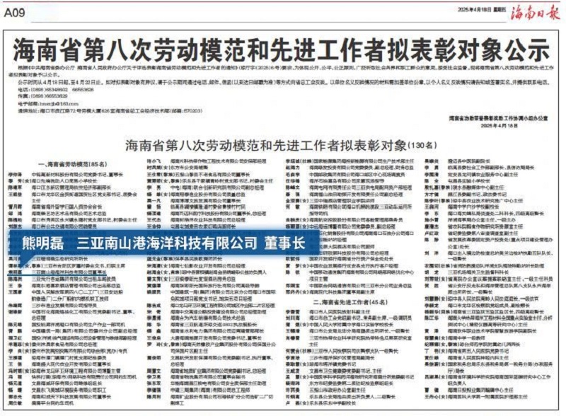 根據(jù)《中共海南省委辦公廳 海南省人民政府辦公廳關(guān)于評(píng)選表彰海南省勞動(dòng)模范和先進(jìn)工作者的通知》(瓊廳字〔2025〕6號(hào))要求,經(jīng)嚴(yán)格評(píng)審和社會(huì)公示,
