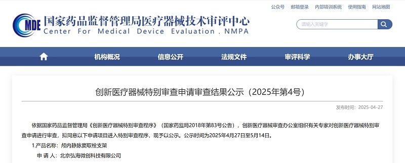 近日,君創(chuàng)Family企業(yè)北京弘海微創(chuàng)科技有限公司(以下簡(jiǎn)稱“弘海微創(chuàng)”)自主研發(fā)的腦靜脈介入治療產(chǎn)品顱內(nèi)靜脈竇取栓支架,已正式進(jìn)入國(guó)家創(chuàng)新醫(yī)療器械特別審批程序(綠色通道)。這既是對(duì)弘海微創(chuàng)團(tuán)隊(duì)技術(shù)實(shí)力與臨床價(jià)值的權(quán)威認(rèn)可,也標(biāo)志著中國(guó)腦靜脈疾病治療邁入全新階段。