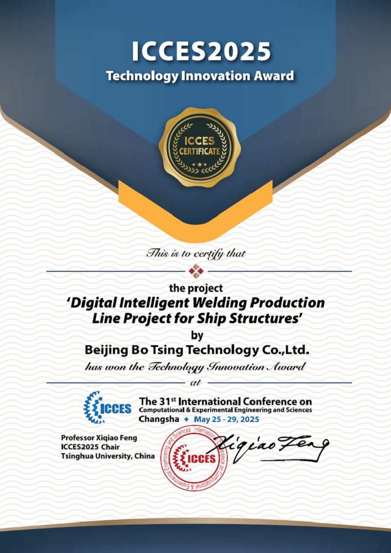 近日,在湖南長沙召開的第31屆計算與實驗科學工程國際會議(ICCES 2025)上,君創(chuàng)Family企業(yè)北京博清科技有限公司(以下簡稱“博清科技”)“船舶結構數(shù)字化智焊生產線項目”榮獲大會頒發(fā)的 “最佳技術創(chuàng)新實踐獎”。